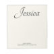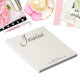 Simple, modern, and feminine off-white custom notepad with your name across the top in a large handwritten script. Personalised with your contact information at the bottom
