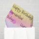 Customisable with recipient's name - Fun, colourful and girly word art happy birthday tissue paper with a gradient colour background - purples, pinks and greens.