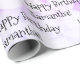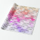 Customisable with recipient's name - Fun, colourful and bright word art happy birthday wrapping paper with a gradient colour background - purples, pinks and yellows.