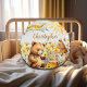 Introducing our Custom Name Honey Bees Teddy Bear Pillow! With a colourful summer design, this pillow is both fun and playful and brings charm to any room! The smiling teddy bear with his jar full of honey, the two birdies on a branch, a yellow watercolor sun, a honeycomb and beautiful wildflowers create a magical, relaxing landscape!