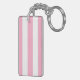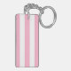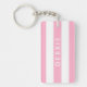 Custom name horizontal stripes pink & white key ring
