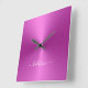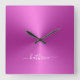 Custom Name Hot Pink Metallic Style Acrylic Square Wall Clock