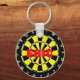 Custom name keychain with dart board design. Personalised gift ideas. Black and yellow dartboard with text or monogram name initial. Double sided print.