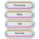 Keep things organised in style with these soft, iridescent glass-effect name labels — designed to look like glossy, dimensional stickers with a subtle rainbow glow.