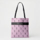 This stylish tote features a repeating pattern of a black silhouette of a female golfer on a light pink background. A bold black band displays your custom name or text in crisp white script. Easily add your name or custom text in the text box, and adjust the background or text colors in Zazzle’s design tool to create a look that fits your style. For custom color requests or questions, message me at the bottom of this listing.