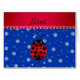 Cute ladybug Christmas gift ideas. Create your own custom Personalised with just add your name (family name),monogram, greeting or initials or saying cute cartoon ladybug with a blue white snowflakes Christmas pattern background and red heart stripe.