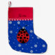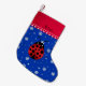 Custom name ladybug blue snowflakes red stripe small christmas stocking