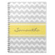 Custom Name Lemon Grey Chevron Notebook