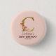 Custom Name Letter C Gold Blush Pink Roses Button