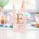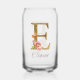 Custom Name Letter E Gold Foil Blush Pink Roses Can Glass