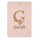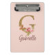 Custom Name Letter G Gold Foil Blush Pink Roses Mini Clipboard