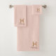 Custom Name Letter H Gold Foil Blush Pink Roses Bath Towel Set