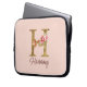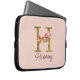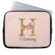 Custom Name Letter H Gold Foil Blush Pink Roses Laptop Sleeve
