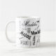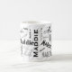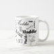 Discover a personalised mug with "Maddie" in overlapping type styles and a background script. The minimalist black, white, and grey design keeps your coffee safe from mix-ups, with your name stylishly displayed.