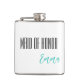 Flask for the maid of honour is shown in white with black text and has a sample name.