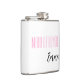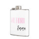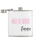 Flask for the maid of honour is shown in white with black and pink text and has a sample name.