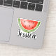 The stick looks amazing. Unfortunately, it would not stick on our suitcase as it was textured. When we found a non-textured (smooth) suitcase, the sticker stuck and looks great. The printing looked awesome.
