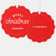Custom red simple minimaliste name merry christmas paper ornament tree, for christmas. Use this simple merry christmas paper ornament for gifts, christmas tree. Modern red and white round ornament. Gift accessorie for christmas party, family, women, guests, relatives, kids