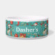 This bowl is a teal-tinted tribute to tail-wagging holiday chaos—wrapped gifts, candy canes, and pups in scarves swirl around like your pet’s dreams of stealing Christmas dinner, all centred on their name like they’re the CEO of festive feasting.