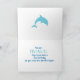 White dolphins stand out against the blues and greens of the ocean. Jumping out of the water, they hold the words Happy Birthday, and the customisable age number. Delight the birthday child with this customisable name and age dolphins leaping in the ocean birthday card!