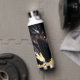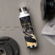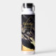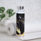 Custom Name Modern Wedding Black Golden Feather Water Bottle