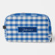 Custom Name monogram Dopp KIT This unique Dopp Kit design is whimsical and stylish. The background consists of an abstract a classic blue background. The front features your custom name or short text in stylish white script on a matching blue band. All colours in this design can be customised and you may further personalise the bag with your choice of font type in the design tool area.