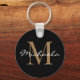 Custom Name Monogram Glamourous Script Black Key Ring