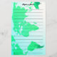 Custom Name Monogram Lined World Map Green Blue Stationery