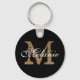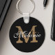 Create your own personalised black round keychain with your custom pretty calligraphy script name and monogram.