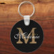Custom Name Monogram Pretty Classy Script Black Key Ring