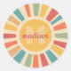 Custom Name & Monogram Retro Stripes Classic Round Sticker
