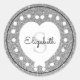 Custom Name Monogram Silver Glitter White Heart Classic Round Sticker