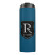Custom monogram travel to go thermal tumbler mug for coffee, tea and other drinks.