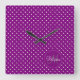 Custom Name Monogram.Violet, White Polka Dots Square Wall Clock