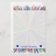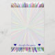 This stationery design features a pattern with lines coloured various colours appearing to burst out from a central point. It also features a customisable name near the bottom, between heart shapes. [~Z0000011]