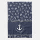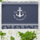 Custom Name Nautical Navy Blue White Anchor Tea Towel
