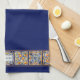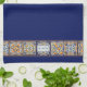 Custom Name Navy Blue & Yellow Mediterranean Tile Tea Towel