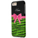 Custom name neon green glitter zebra stripes bow Case-Mate iPhone case