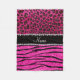 Custom name neon hot pink zebra stripes leopard fleece blanket