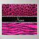 Custom name neon hot pink zebra stripes leopard poster