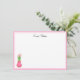 Custom Name Note Card shown in the basic matte white card paper with a Pink border trim and has a pink tulips art print.