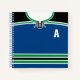 8.5" x 8.5" Spiral Notebook with laminated covers, and a choice of paper style, including sketchbook, ruled, half ruled, graph. The front and back of the notebooks have customisable jersey style designs, allowing you to add your own choice name and number to the back, and an 'A' or 'C' or number on the front, use the boxes to the right of the image to change the text.