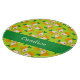 Custom name orange pears on green cutting board