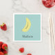 A whimsical touch of personalisation takes centre stage as a meticulously hand-painted banana showcases a custom name, bringing a playful twist to a serene blue background. The vibrant strokes of the name on the banana peel stand out against the calming blue, encapsulating a delightful fusion of creativity and charm.