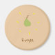 A personalised touch adds an element of charm to a hand-painted pear, where a custom name is delicately inscribed, creating a unique and endearing artistic centerpiece against a warm, earthy brown backdrop. The subtle yet intricate strokes of the name elegantly complement the organic form of the pear, forming a harmonious blend that emanates a rustic yet modern appeal.