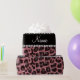 Modern and trendy personalised custom name pastel pink glitter leopard spots pattern (animal print) with a black diamonds stripe (not real diamonds) with hearts and dots personalised with your name gifts or monogram gifts or your initials. Pretty girly leopard print gift ideas.
