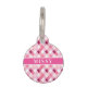 Custom name pet tag is shown in a pink plaid print, customise and change the pet's name to what you need.