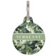 Custom name pet tag is shown in a green camo print, customise and change the pet's name to what you need.