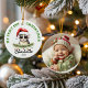 Crafted with care, the ornament is printed in full colour on durable ceramic for a glossy, vibrant finish. It includes an attached hanging string so it’s ready to display the moment it arrives. Perfect for baby girls and baby boys, newborn Christmas photos, and baby’s first holiday celebrations.