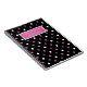 Unique kids office stationery notebook with a pink, white and grey polka dot pattern on a black background, custom name template / subject title template. A girly, cute and cool gift for back to school.
